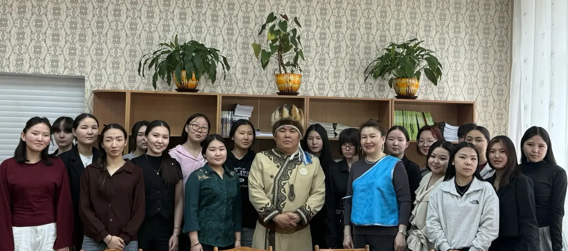 В рамках Декады алтайского героического эпоса состоялась встреча студентов 11 А группы дошкольного отделения с певцом, сказителем, музыкантом, обладателем Гран – При Международного курултая сказителей, лауреатом Государственной премии имени А.Г. Калкина, художественным руководителем оркестра алтайских национальных инструментов РА, директором Центра развития культуры, ремесел и национальных видов спорта, Мергеном Константиновичем Тельденовым.