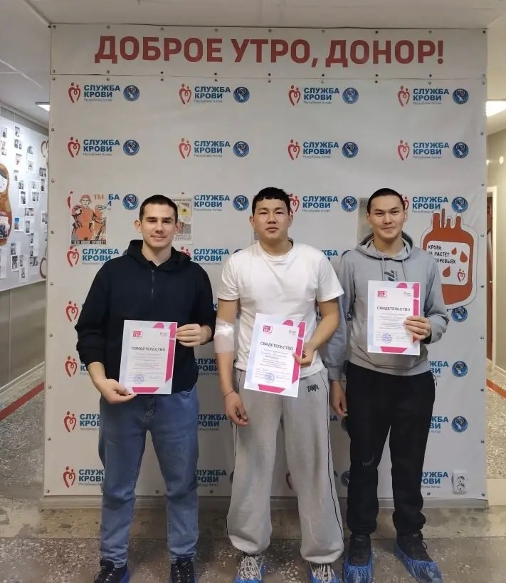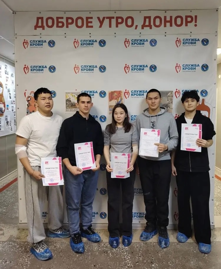 Студенты 28 группы Горно-Алтайского педагогического колледжа имени В.А. Сластёнина, вместе со своим классным руководителем Александром Александровичем Дедовцом, приняли участие в донорской акции на Станции переливания крови.