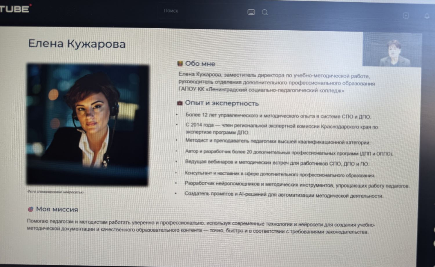 Как отмечает сама Елена Ивановна, моя миссия – помогать педагогам и методистам работать уверенно и профессионально, используя современные технологии и нейросети для создания учебно-методической документации и качественного образовательного контента – точно, быстро и в соответствии с требованиями законодательства.