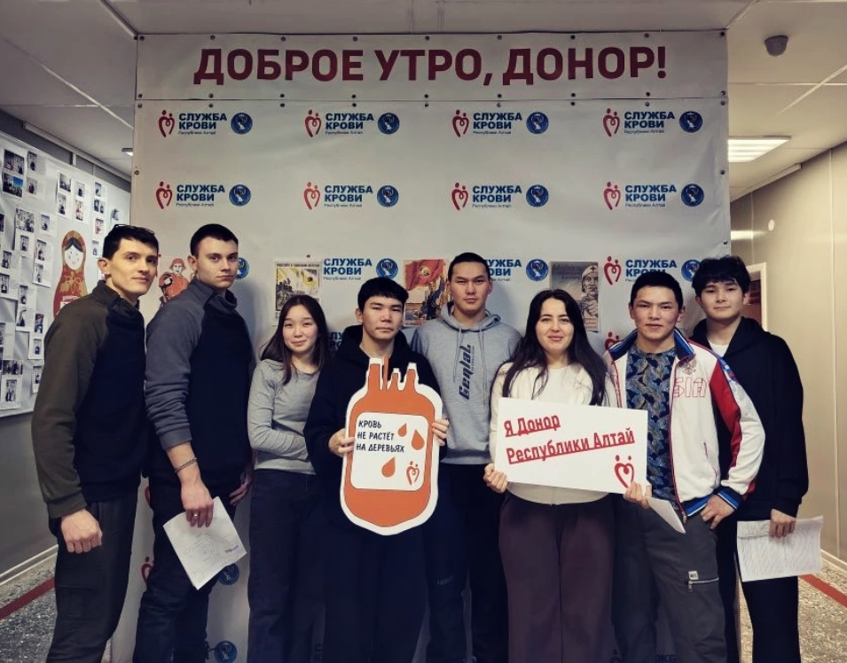 Студенты 28 группы Горно-Алтайского педагогического колледжа имени В.А. Сластёнина, вместе со своим классным руководителем Александром Александровичем Дедовцом, приняли участие в донорской акции на Станции переливания крови.