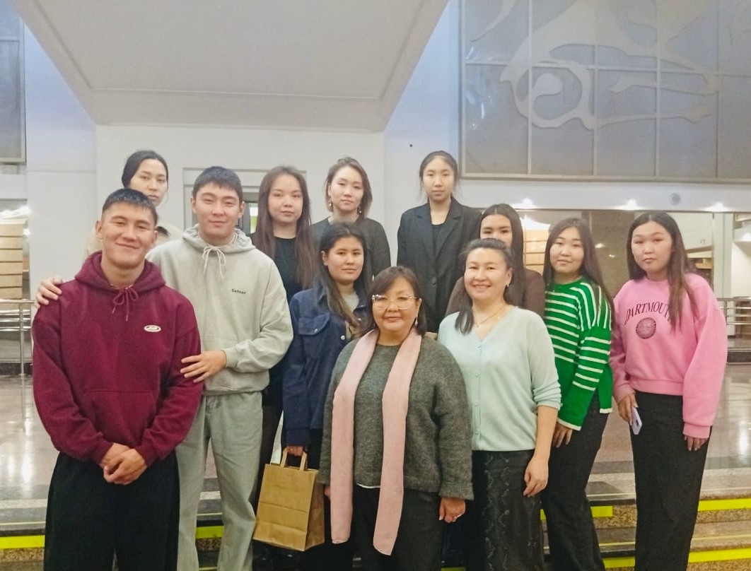 С большим интересом студенты слушали историю создания театра, о присвоении ему имени знаменитого алтайского классика П.В.Кучияка, о разных поколениях актерского состава, участии в разных фестивалях и мероприятиях.