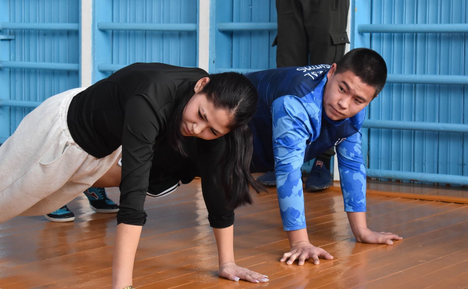 Первым испытанием стала «Планка» – упражнение, которое безжалостно проверяет силу воли и физическую подготовку. Каждый участник стремился продержаться как можно дольше, борясь с дрожью в мышцах и жжением. Атмосфера была накалена до предела: тишина, прерываемая лишь глубоким дыханием и иногда тихим стоном, свидетельствовала о невероятных усилиях, которые прилагали наши студенты.